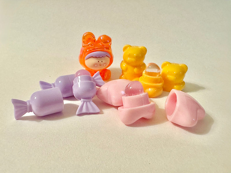 Three fun-size lip brushes shaped like a star, teddy bear, and candy. Cute, collectible, and actually useful, not just decoration.